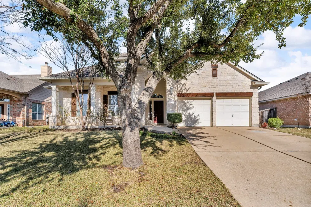 Nestled in the highly sought-after Teravista master-planned community, this stunning home offers an inviting open floor plan designed for both comfort and style. Freshly painted inside, this home feels bright and welcoming. A versatile front room provides the perfect space for a home office, study, or flex area to suit your needs. The spacious living room features a cozy fireplace and seamlessly opens to the kitchen, which is equipped with elegant maple cabinetry, granite countertops, and upgraded appliances. A formal dining room, complete with beautiful French doors leading to the backyard, creates an ideal setting for gatherings. The private primary suite is a true retreat, offering two walk-in closets, a spa-like ensuite with dual vanities, a soaking tub, and a walk-in shower. The additional bedrooms are excellent for family or guests, offering comfortable spaces for rest and relaxation. Outside, enjoy the covered patio and private backyard—perfect for outdoor dining, entertaining, or simply unwinding. A striking limestone exterior with cedar trim enhances its curb appeal. Enjoy access to Teravista’s top-tier amenities, including golf courses, pools, parks, and walking trails, all within a prime Round Rock location near shopping, dining, and major employers. The home has been well-maintained with freshly cleaned carpets—please remove shoes upon entry.