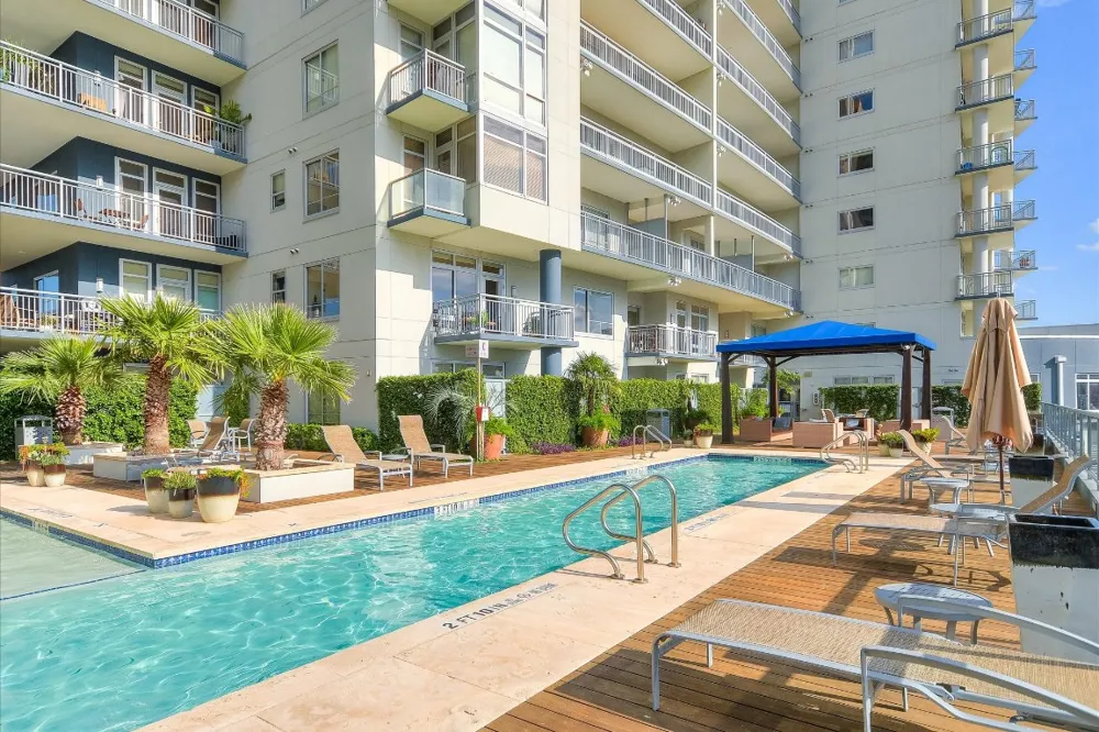 Beautiful lock & leave, two bedroom, two bath, condo in the heart of Downtown Austin! Scared of heights? This unit is situated on 6th floor *pool deck* with your own gated patio and direct access to the pool, fire pit, and gazebo! This condo features an open dining & living space, an adorable kitchen with granite countertops and pantry, plus beautiful bamboo flooring! Enjoy relaxing in the primary ensuite bathroom with a soaking tub, separate shower, double-vanities and a large walk-in closet with custom organizing system. The Shore Condominiums includes some of the most exceptional building amenities; a 24-hour concierge, a fitness center, a conference room, laundry pickup services, access to the neighboring Hotel Van Zandt’s pool deck and restaurant/bar amenities, and of course, the pool, gazebo, and fire pit outside your door! Being in the heart of Rainey Street district also means you're walking distance to popular venues such as Revue, Geraldine's, Lustre Pearl, Ciclo, Emmer & Rye, Banger's Beer Garden and Lucille. Easy and close access to the Hike and Bike Trail around Lady Bird Lake! This unit also comes with two reserved parking spaces in the garage. Don't miss this opportunity!